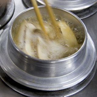 ご注文を受けてから、伝統の炊き方で20分ほどじっくりと炊き上げ、木を組み合わせた特注の容器で提供しております。味だけでなく、視覚、嗅覚から「和」の雰囲気を存分に味わえるように工夫が凝らされています。お料理から容器までこだわりつくされた「元祖」釜めしをお楽しみください。